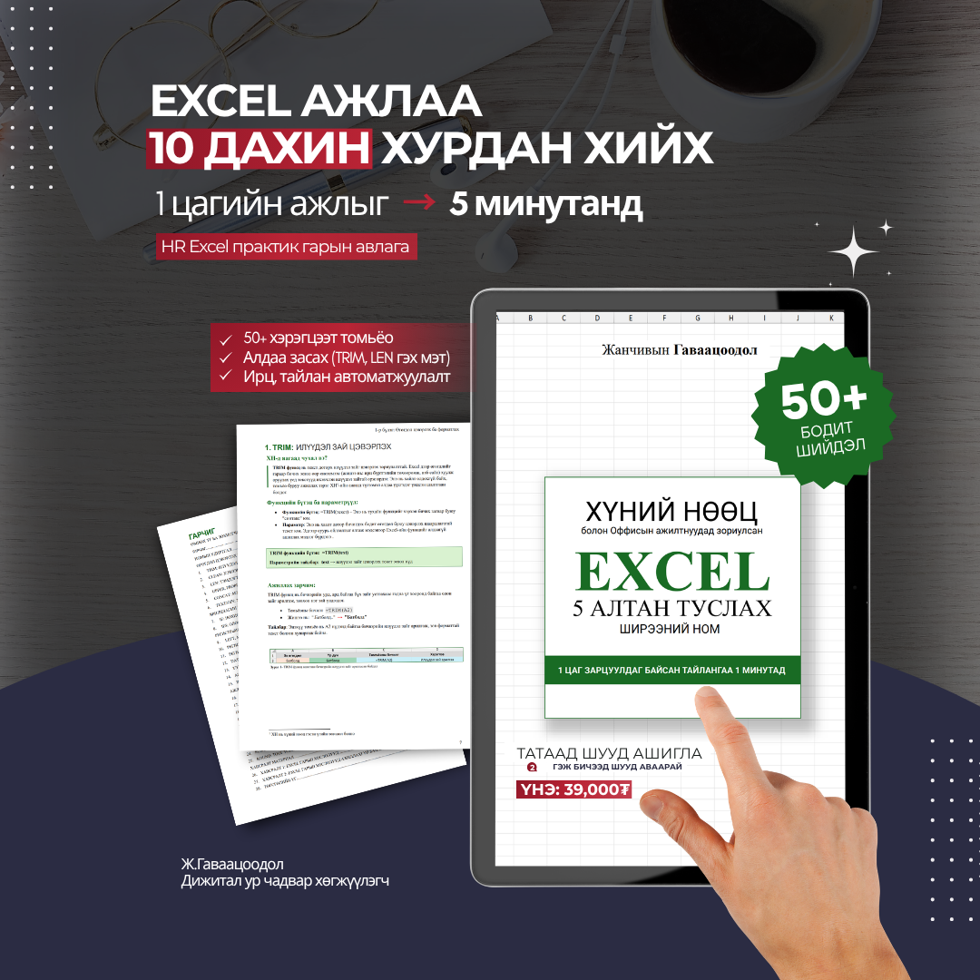 👉 Та Excel-ийг ойлгож, өөрөө хийхийг хүсвэл энэ ном танд тохиромжтой.